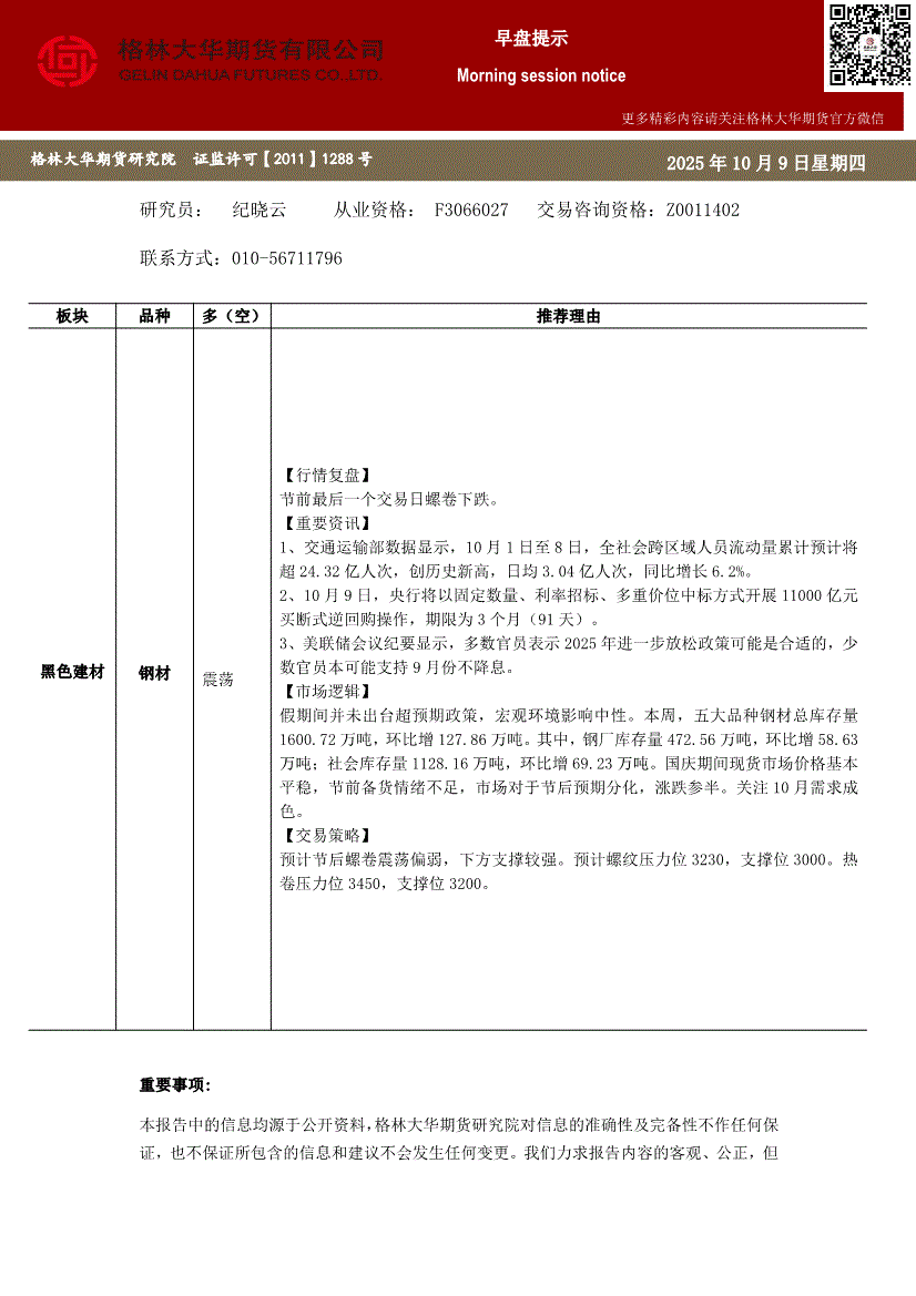 格林大华期货-早盘提示:焦煤、焦炭-251010