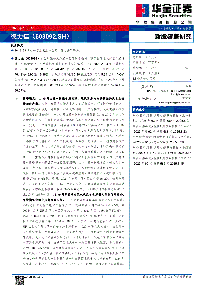 德力佳:华金证券-德力佳-603092-新股覆盖研究-251018