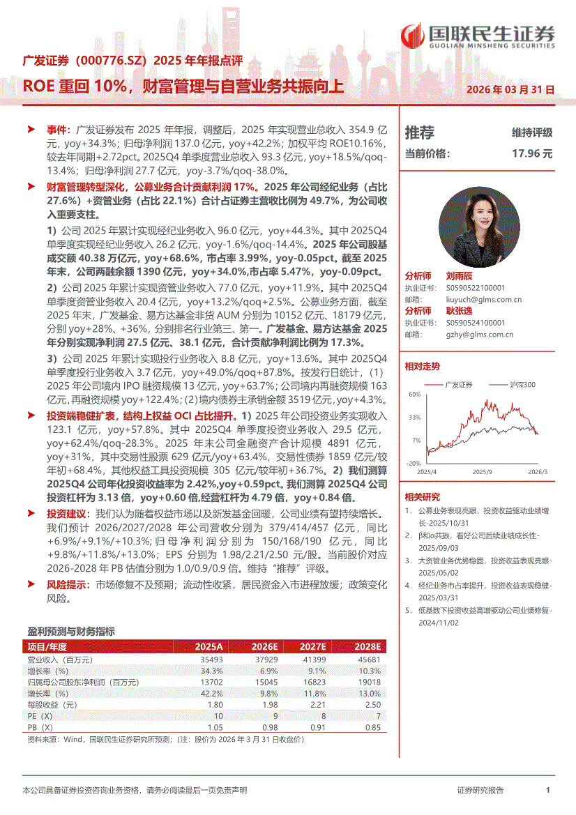 广发证券:国联民生证券-广发证券-000776-2025年年报点评:ROE重回10%,财富管理与自营业务共振向上-260331