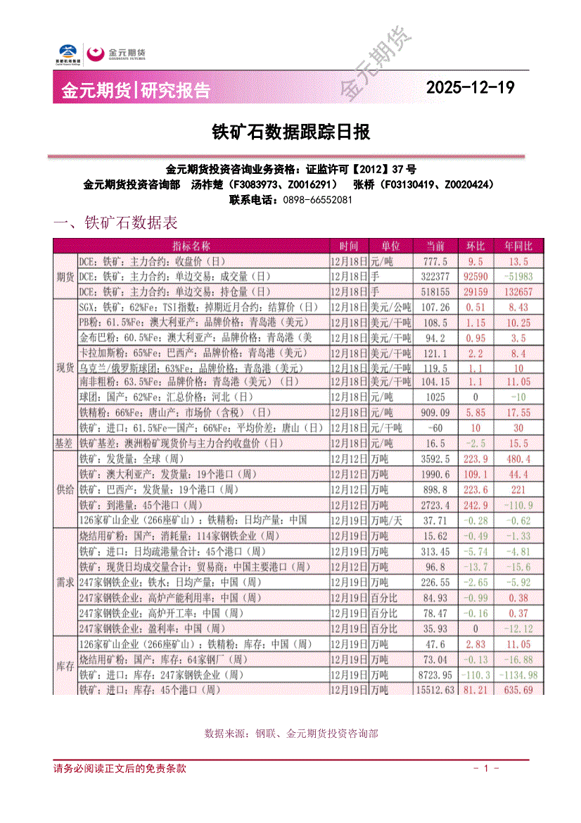 金元期货-螺纹钢产业链数据跟踪日报-251217