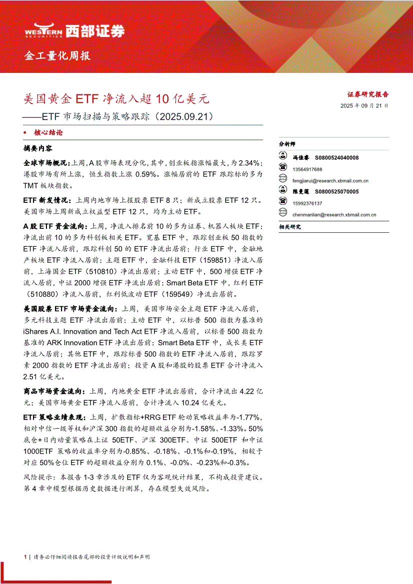 西部证券-ETF市场扫描与策略跟踪:美国黄金ETF净流入超10亿美元-250921