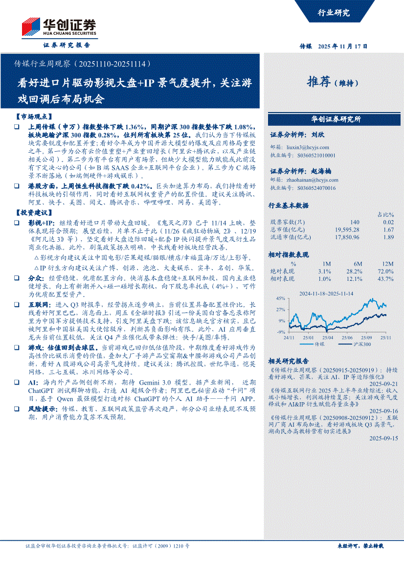 传媒行业:华创证券-传媒行业周观察:看好进口片驱动影视大盘+IP景气度提升,关注游戏回调后布局机会-251117