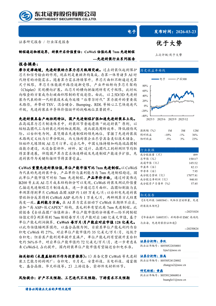电子行业:东北证券-先进封装行业系列报告:制程逼近物理边界,封装开启价值重估,CoWoS估值比肩7nm先进制程-260323