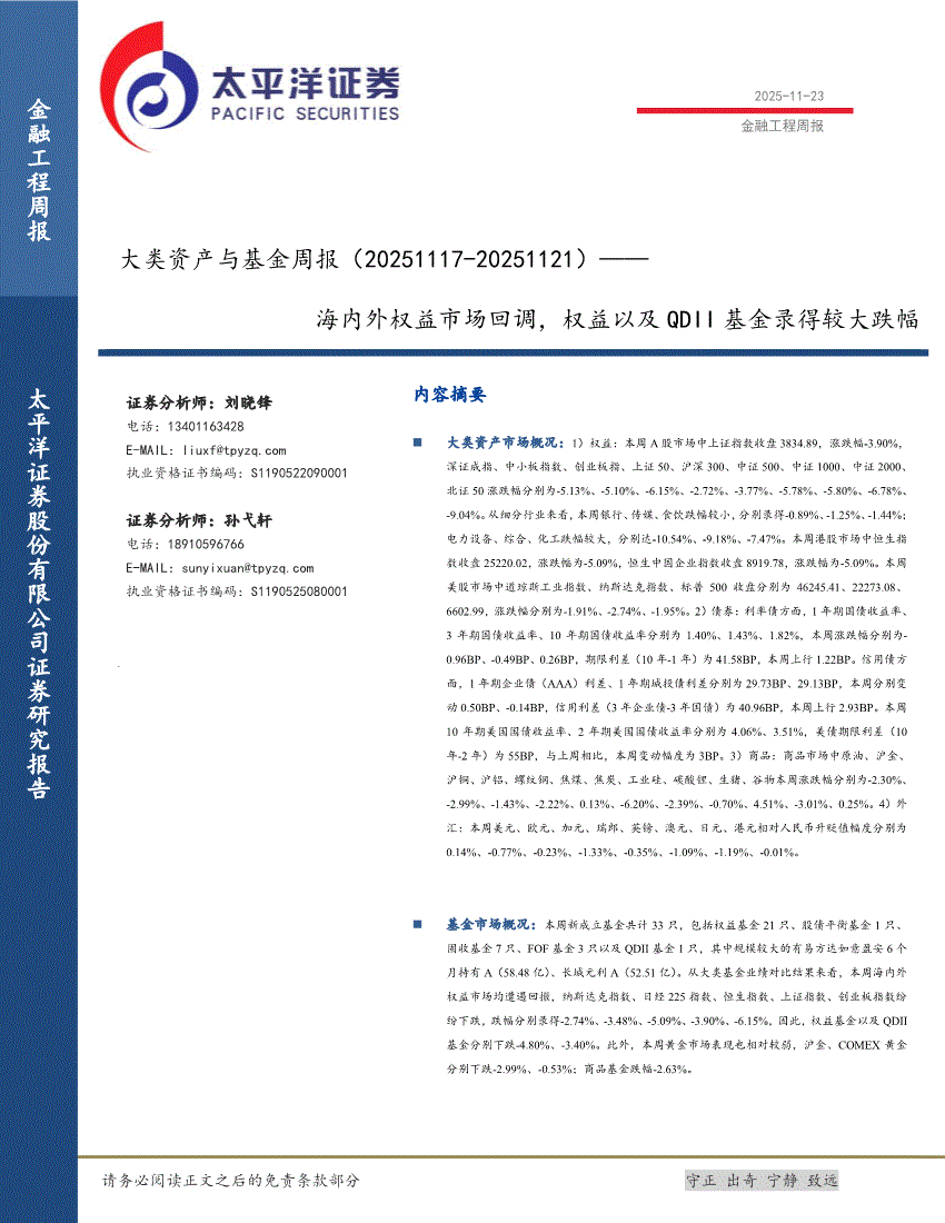 太平洋证券-大类资产与基金周报:海内外权益市场回调,权益以及QDII基金录得较大跌幅-251123