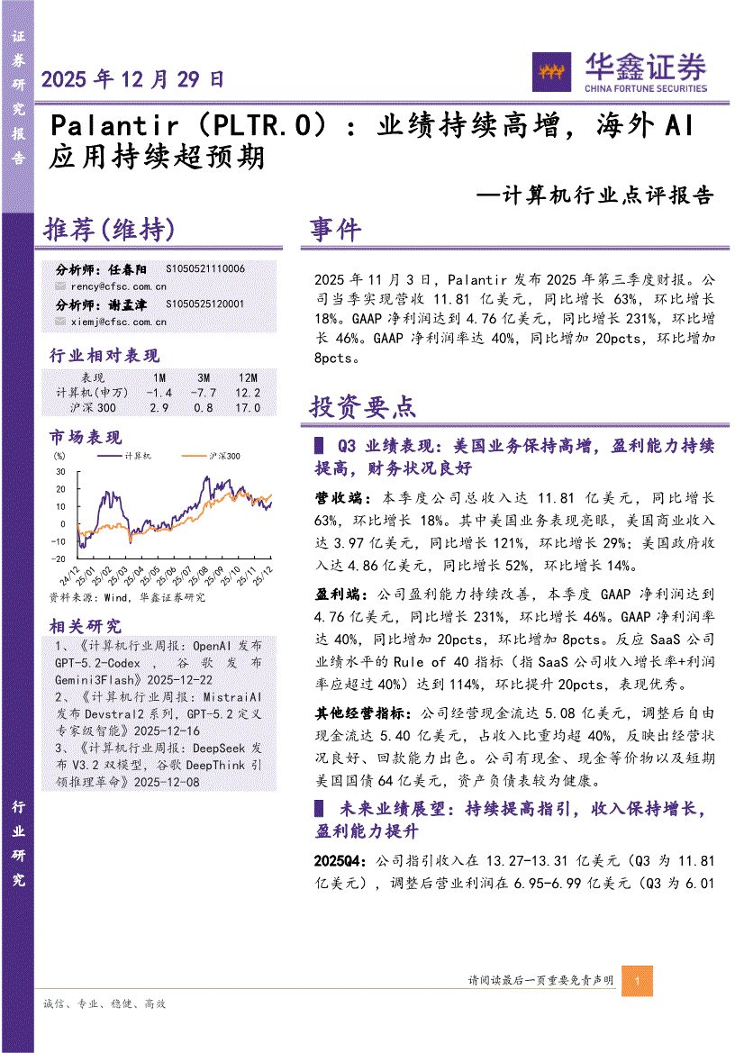 Palantir:华鑫证券-Palantir-PLTR.US-计算机行业点评报告:业绩持续高增,海外AI应用持续超预期-251229