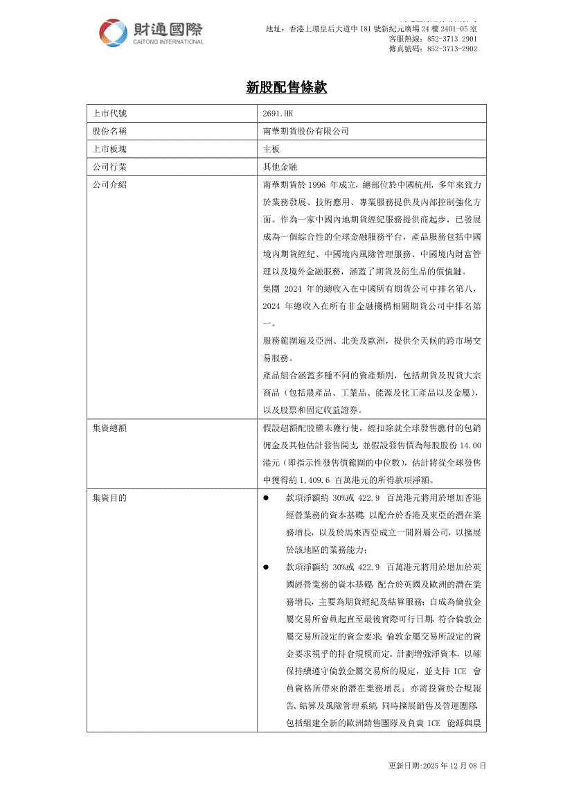 财通国际-新股配售条款:南华期货(2691.HK)-251212