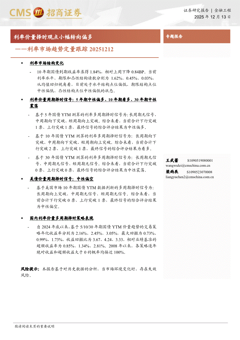 招商证券-利率市场趋势定量跟踪:利率价量择时观点小幅转向偏多-251213