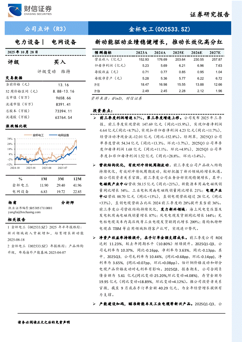 金杯电工:财信证券-金杯电工-002533-新动能驱动业绩稳健增长,推动长效化高分红-251028