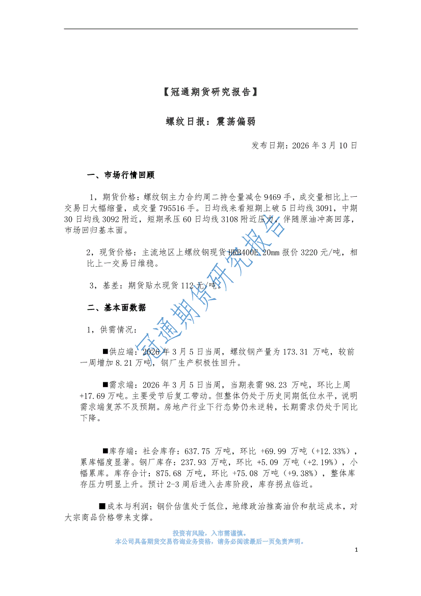 冠通期货-螺纹日报:震荡偏弱-260310