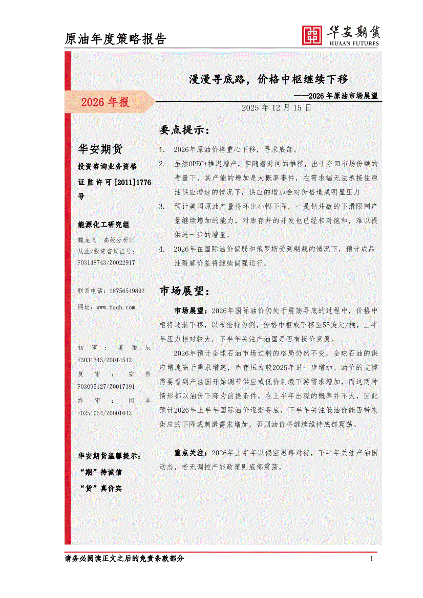 华安期货-原油年度策略报告:2026年原油市场展望,漫漫寻底路,价格中枢继续下移-251215