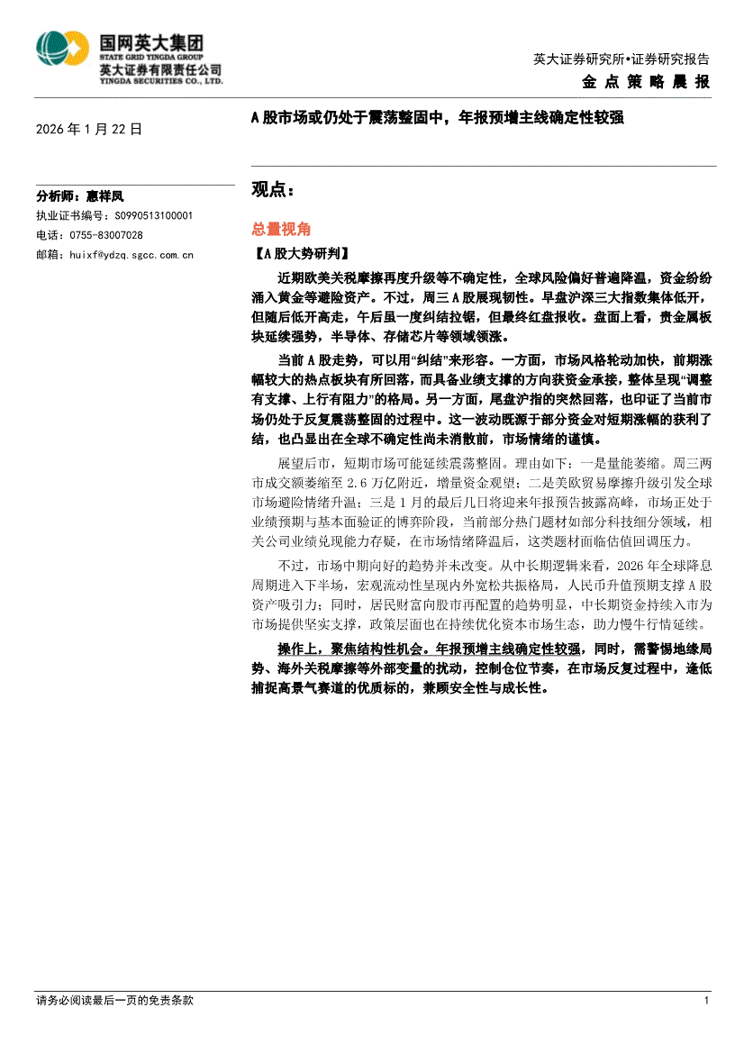 英大证券-金点策略晨报-260122