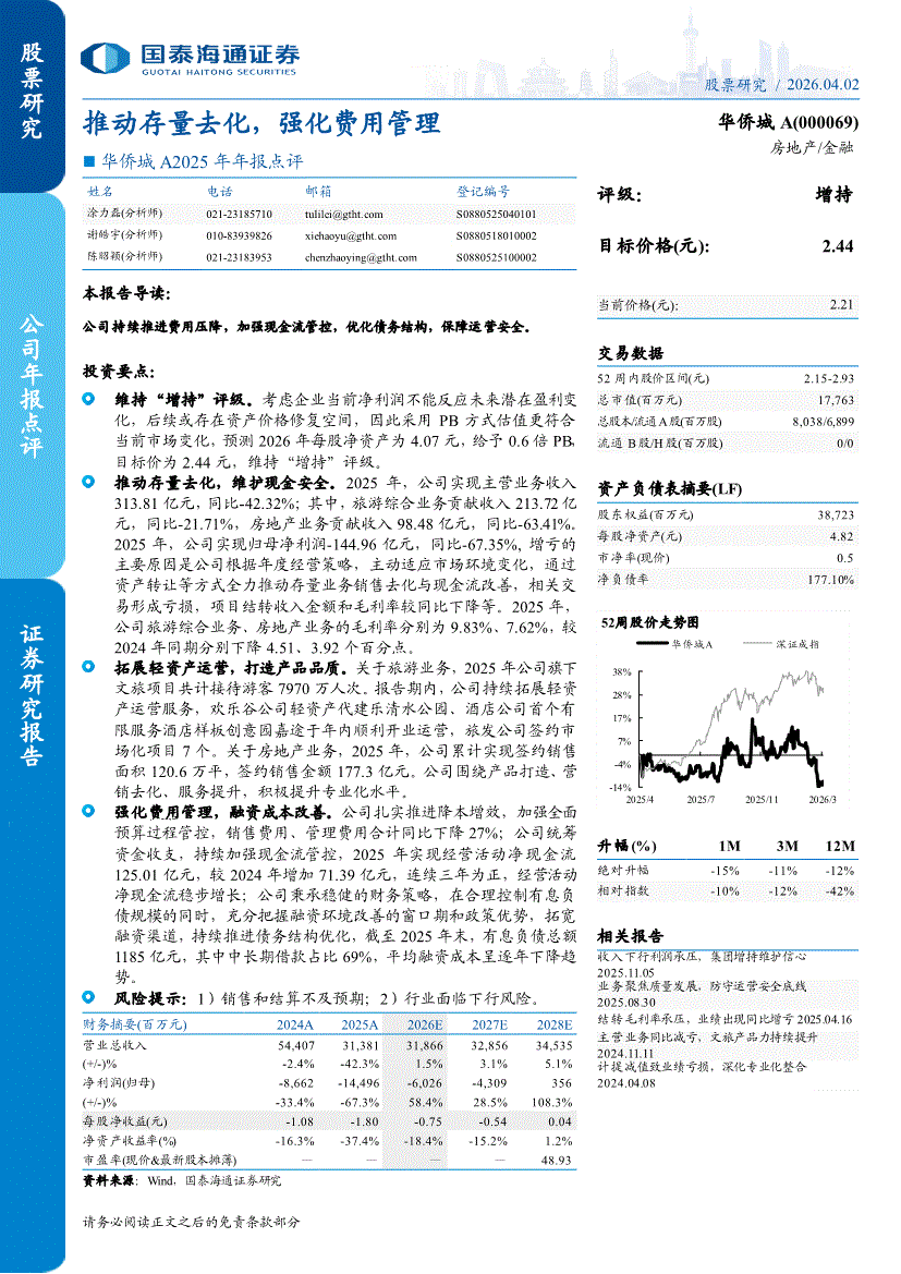 华侨城A:国泰海通证券-华侨城A-000069-2025年年报点评:推动存量去化,强化费用管理-260402