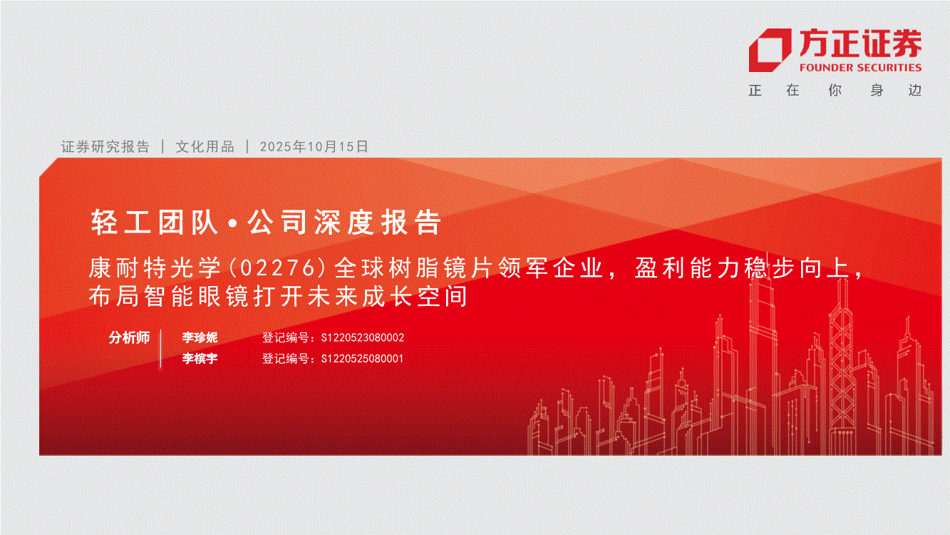 康耐特光学:方正证券-康耐特光学-2276.HK-全球树脂镜片领军企业,盈利能力稳步向上,布局智能眼镜打开未来成长空间-251015