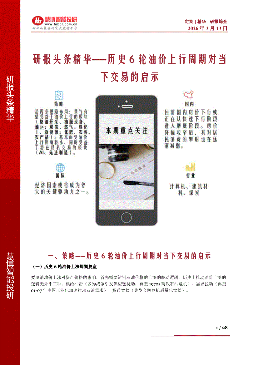 慧博智能投研-慧博研报炼金之研报头条精华:历史6轮油价上行周期对当下交易的启示-260313