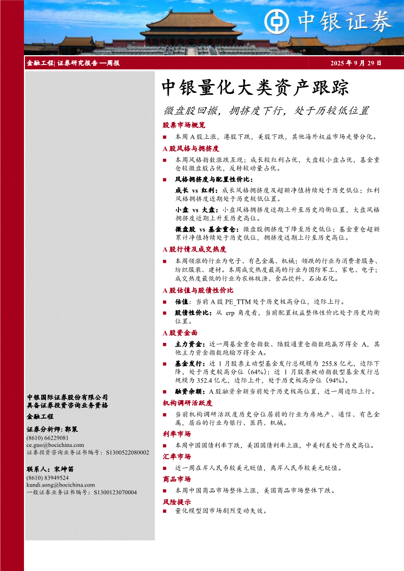 中银国际-中银量化大类资产跟踪:中小盘反弹力度领先,微盘拥挤度降至低位-250915