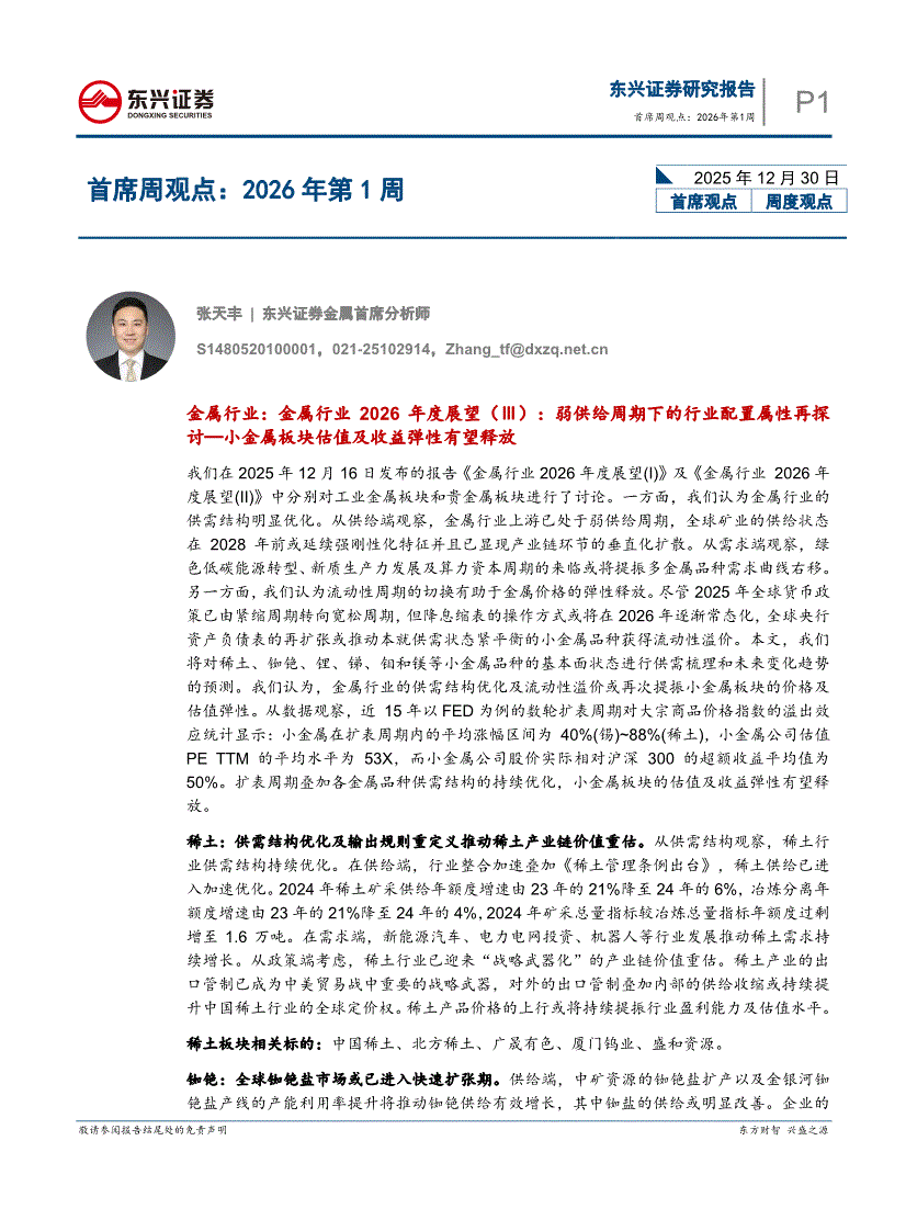 天风证券-金属与材料行业研究周报:跨年行情波动抬升,商品震荡上行-260106