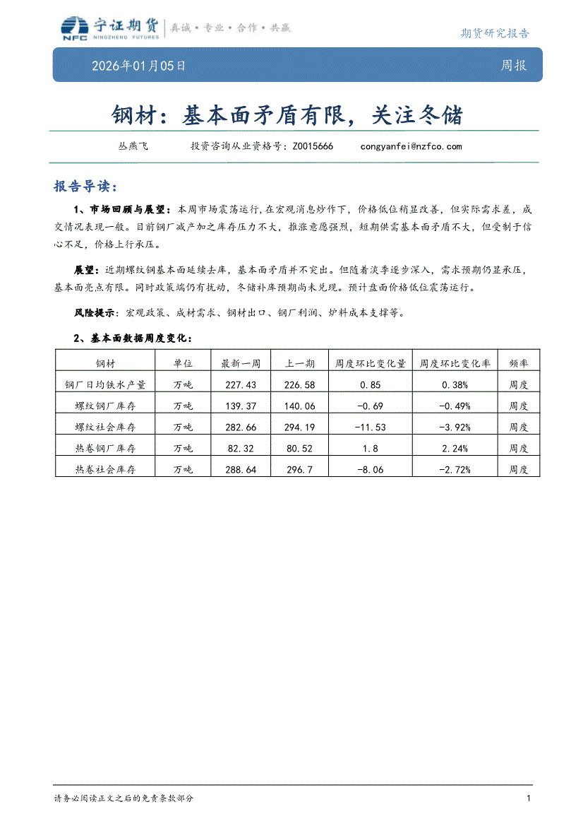 宁证期货-钢材周报:基本面矛盾有限,关注冬储-260105