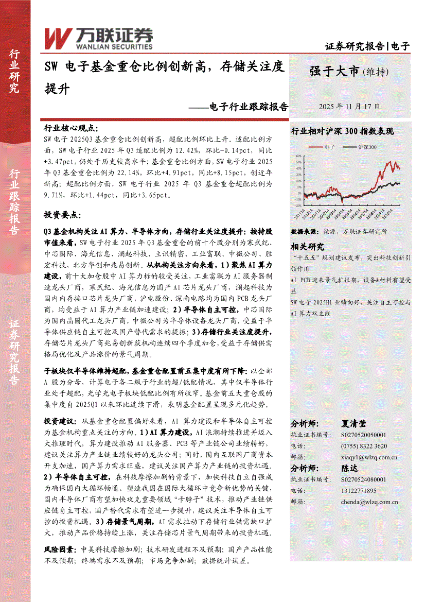 电子行业:万联证券-电子行业跟踪报告:SW电子基金重仓比例创新高,存储关注度提升-251117