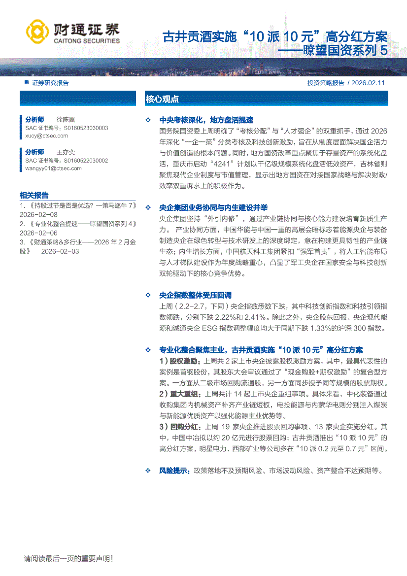 财通证券-瞭望国资系列5:古井贡酒实施“10派10元”高分红方案-260211