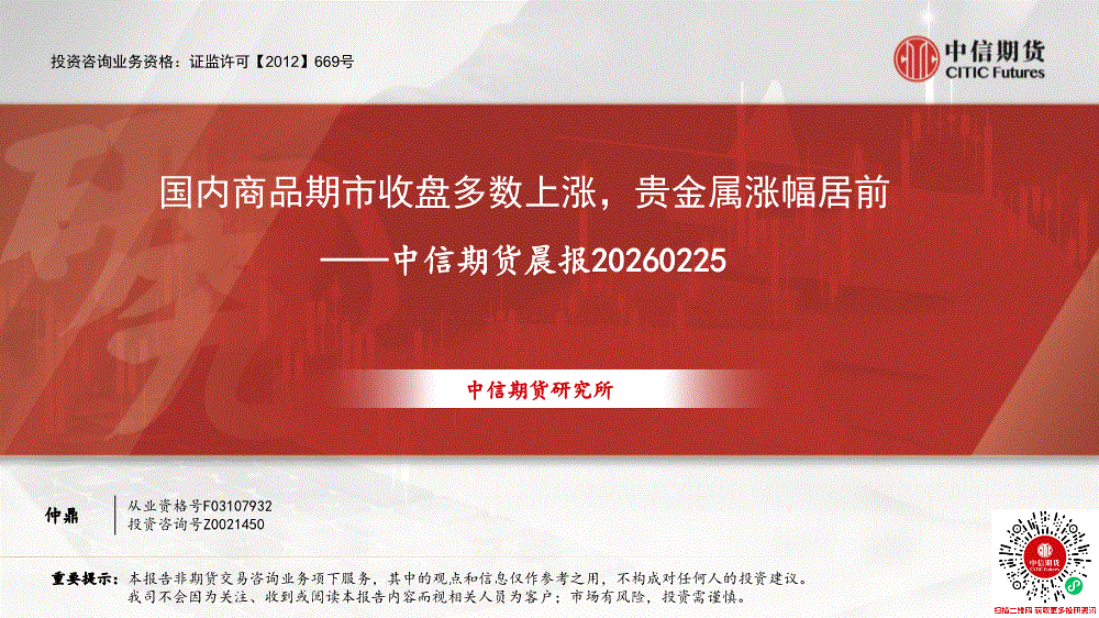 中信期货-晨报:国内商品期市收盘多数上涨,贵金属涨幅居前-260225