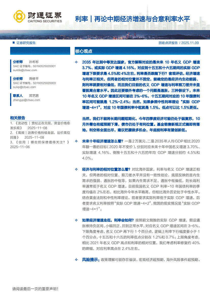 财通证券-利率|再论中期经济增速与合意利率水平-251109