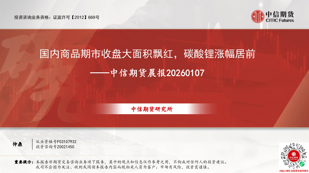 中信期货-晨报:国内商品期市收盘大面积飘红,碳酸锂涨幅居前-260107