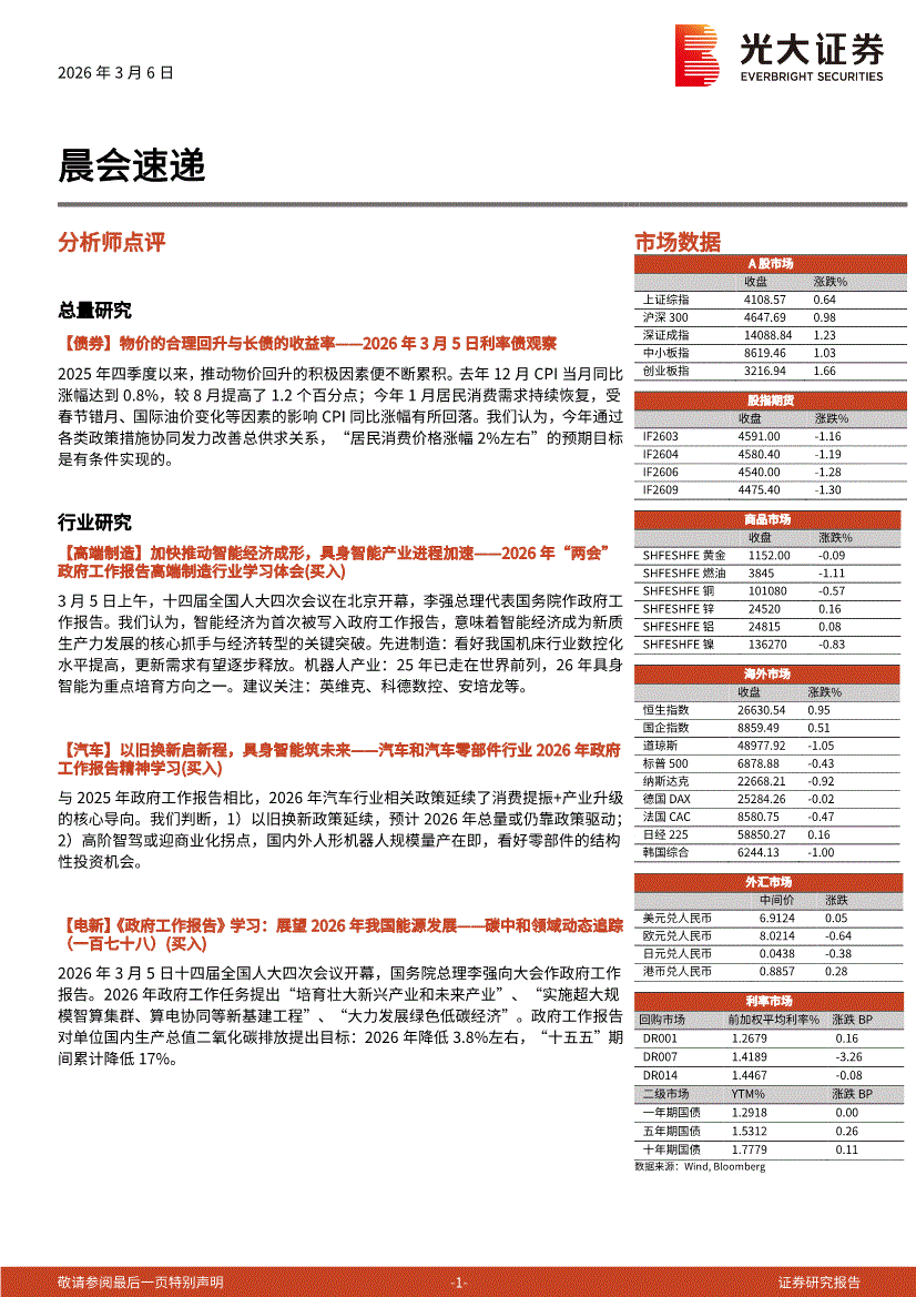 第一创业-晨会纪要-260306