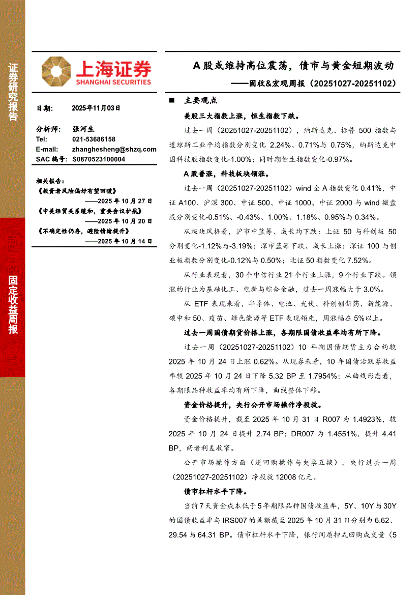上海证券-固收&宏观周报:A股或维持高位震荡,债市与黄金短期波动-251103