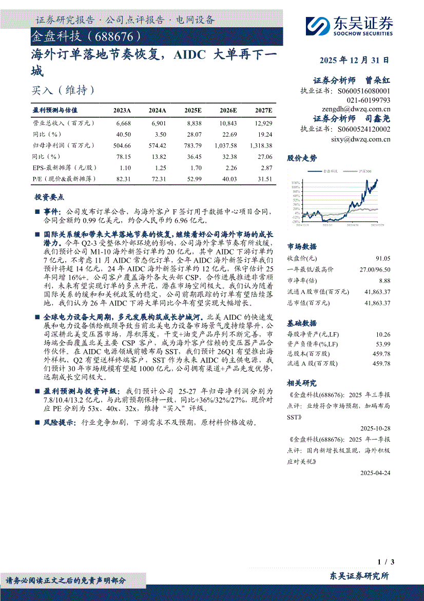金盘科技:东吴证券-金盘科技-688676-海外订单落地节奏恢复,AIDC大单再下一城-251231