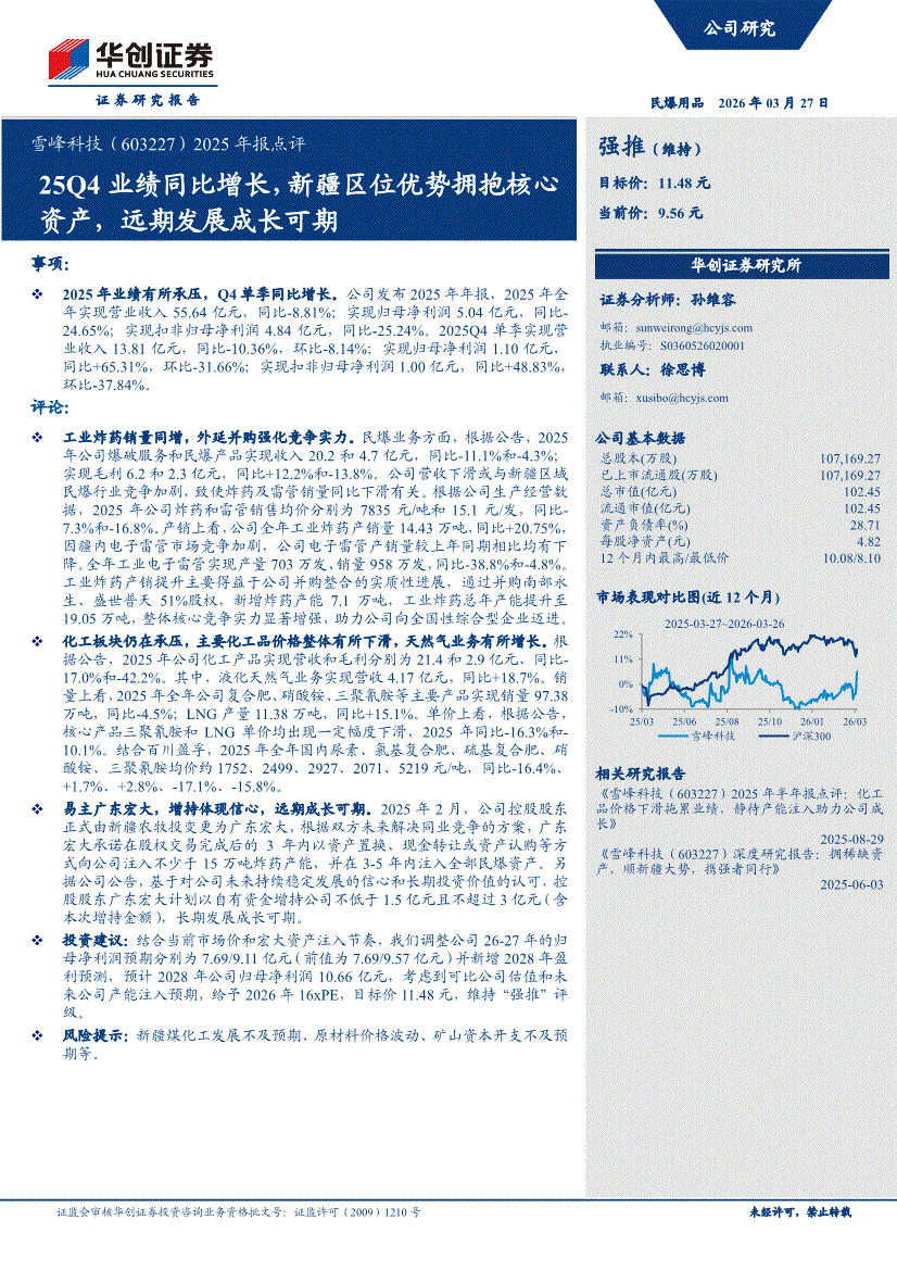 雪峰科技:华创证券-雪峰科技-603227-2025年报点评:25Q4业绩同比增长,新疆区位优势拥抱核心资产,远期发展成长可期-260327