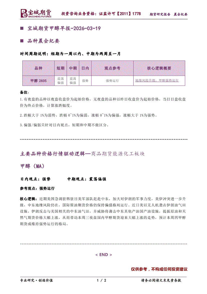 宝城期货-甲醇早报-260319
