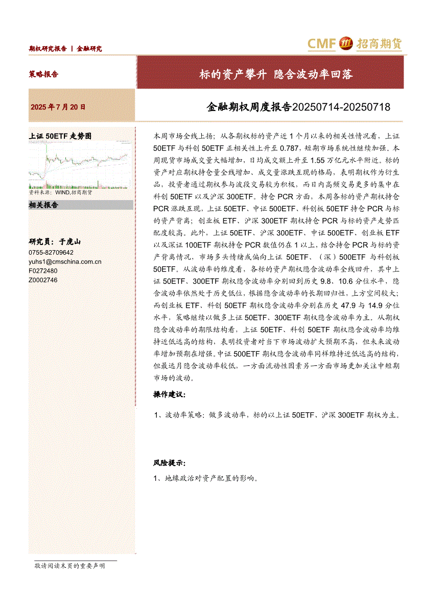 招商期货-金融期权周度报告:标的资产攀升,隐含波动率回落-250720