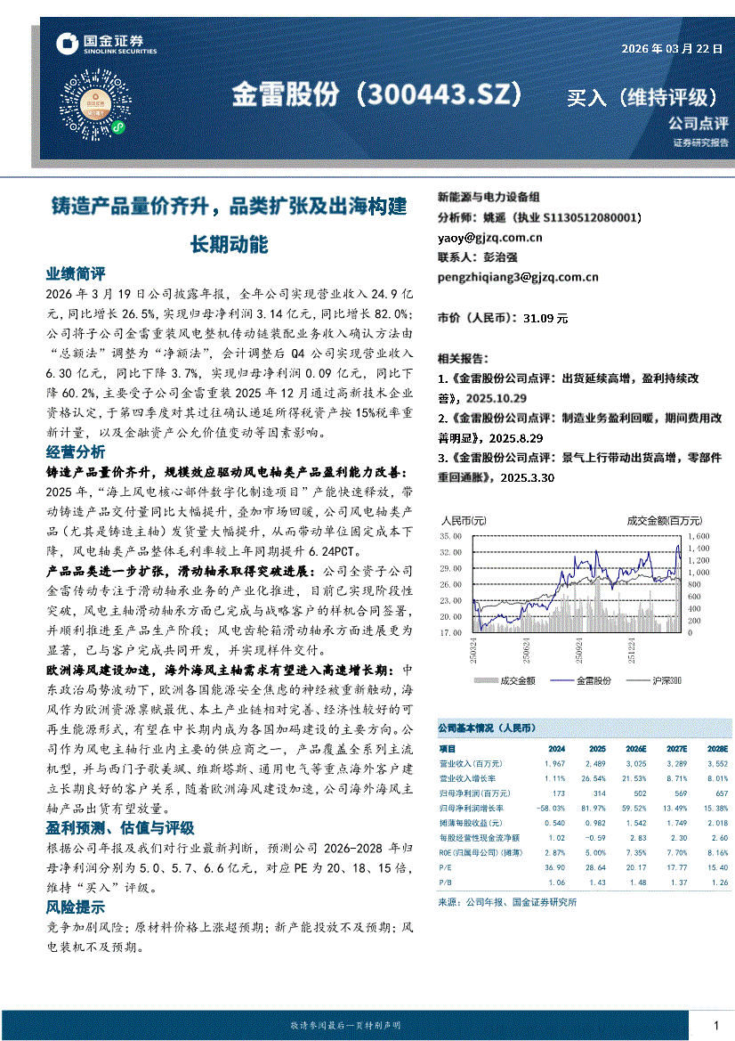 金雷股份:国金证券-金雷股份-300443-铸造产品量价齐升,品类扩张及出海构建长期动能-260322