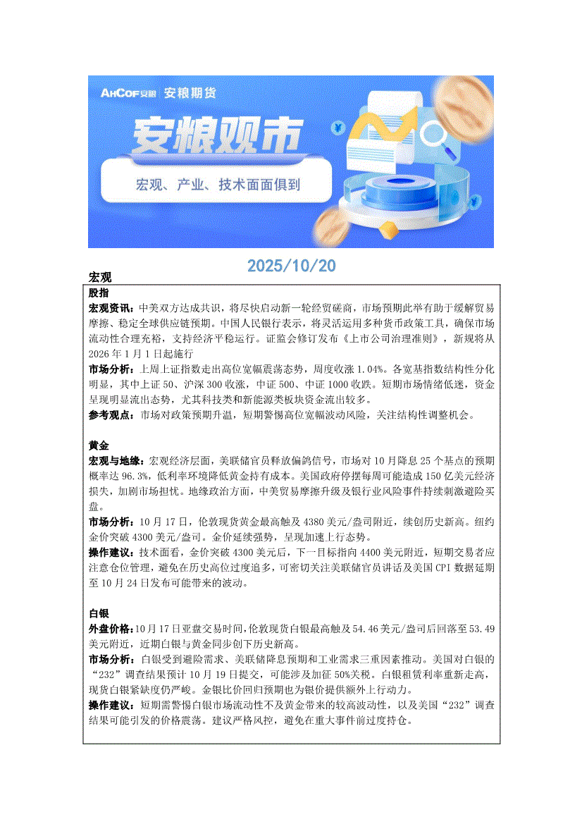 安粮期货-安粮观市-251020