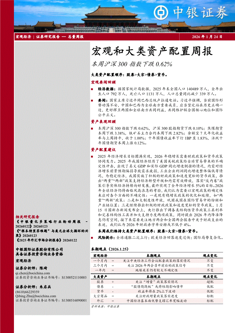 中银国际-宏观和大类资产配置周报:本周沪深300指数下跌0.62%-260124