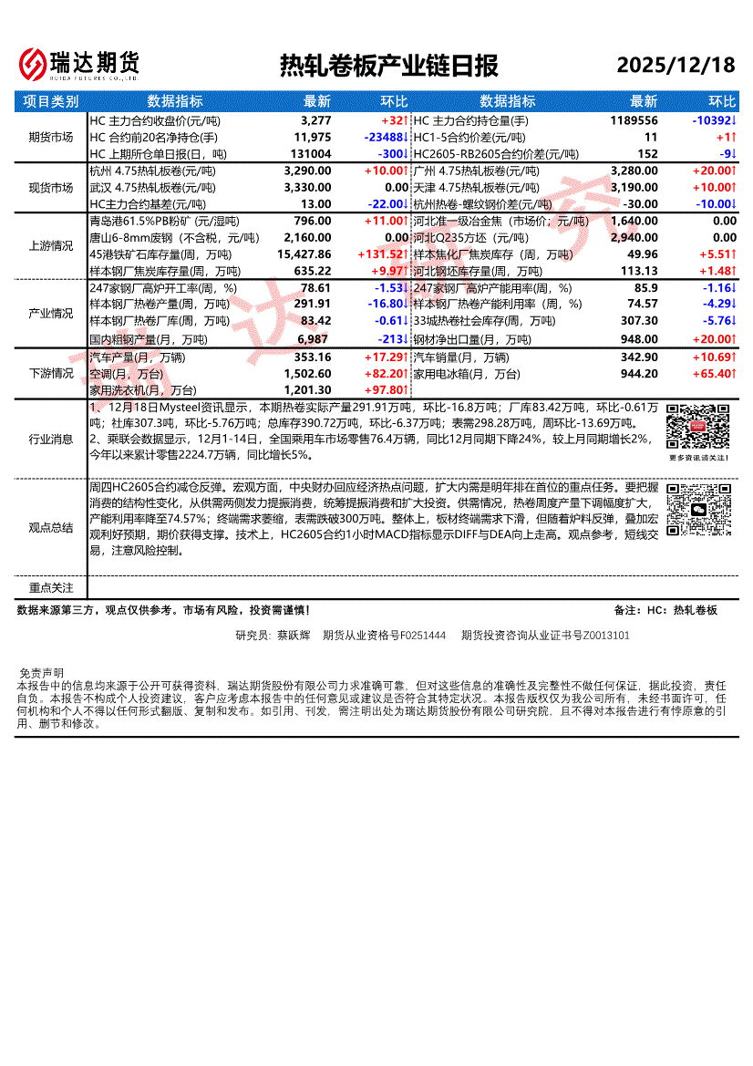 瑞达期货-热轧卷板市场周报:宏观预期向好,热卷期价震荡偏强-251205
