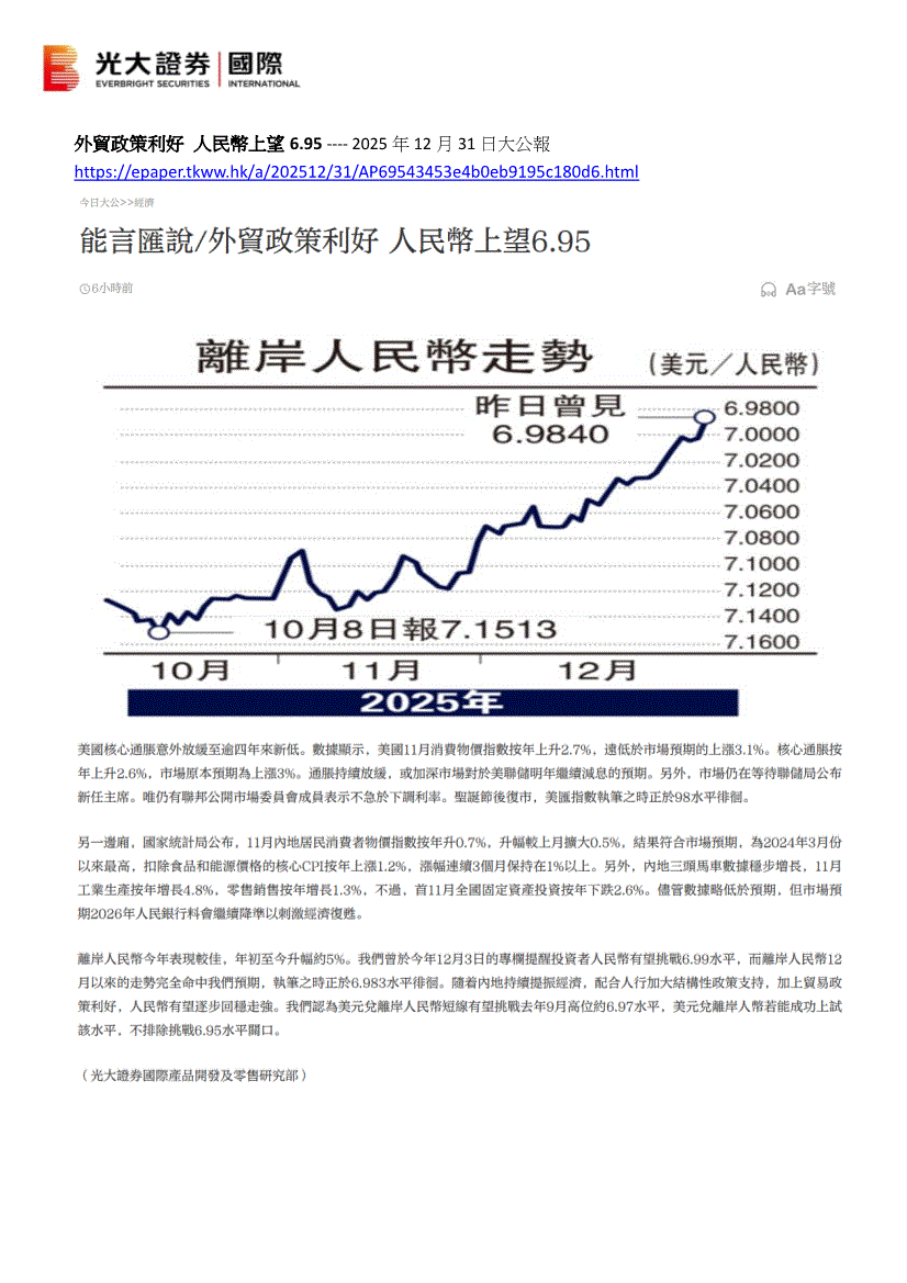 光大证券(国际)-大公报:外贸政策利好,人民币上望6.95-251231