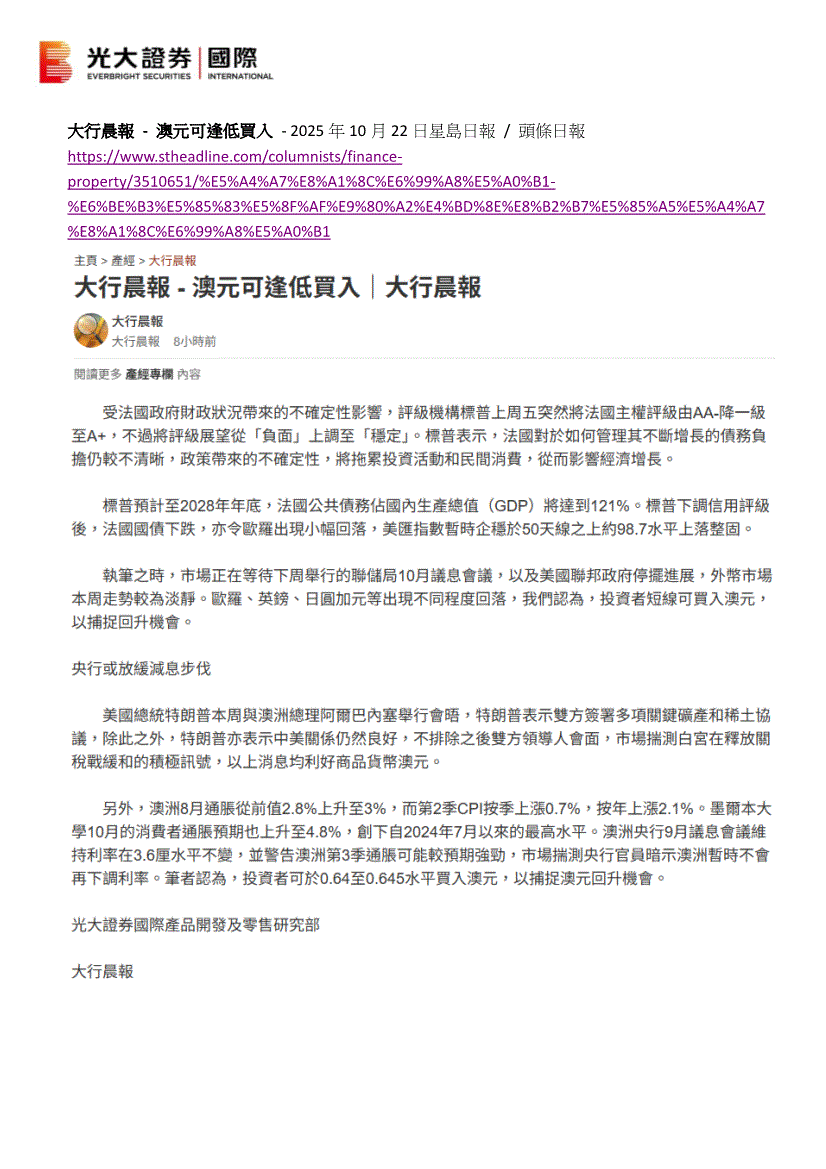 光大证券(国际)-大行晨报:澳元可逢低买入-251022