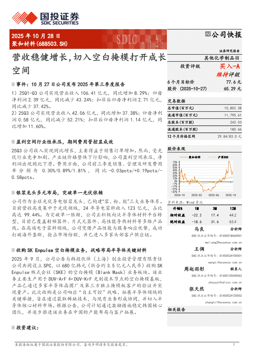 聚和材料:国投证券-聚和材料-688503-营收稳健增长,切入空白掩模打开成长空间-251028