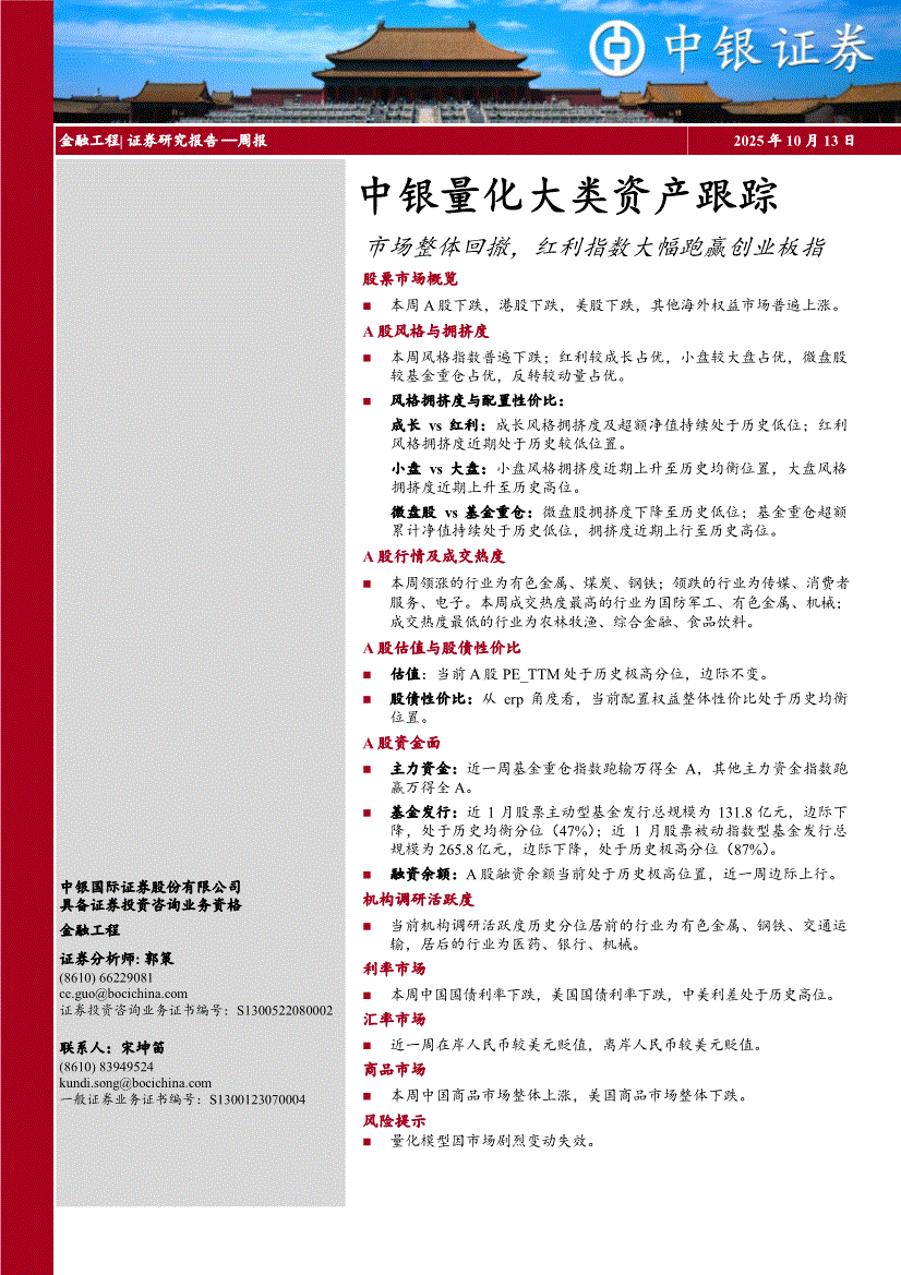 中银国际-中银量化大类资产跟踪:市场整体回撤,红利指数大幅跑赢创业板指-251013