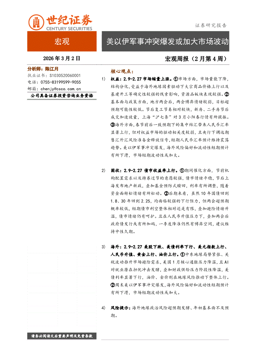 世纪证券-宏观周报(2月第4周):美以伊军事冲突爆发或加大市场波动-260302