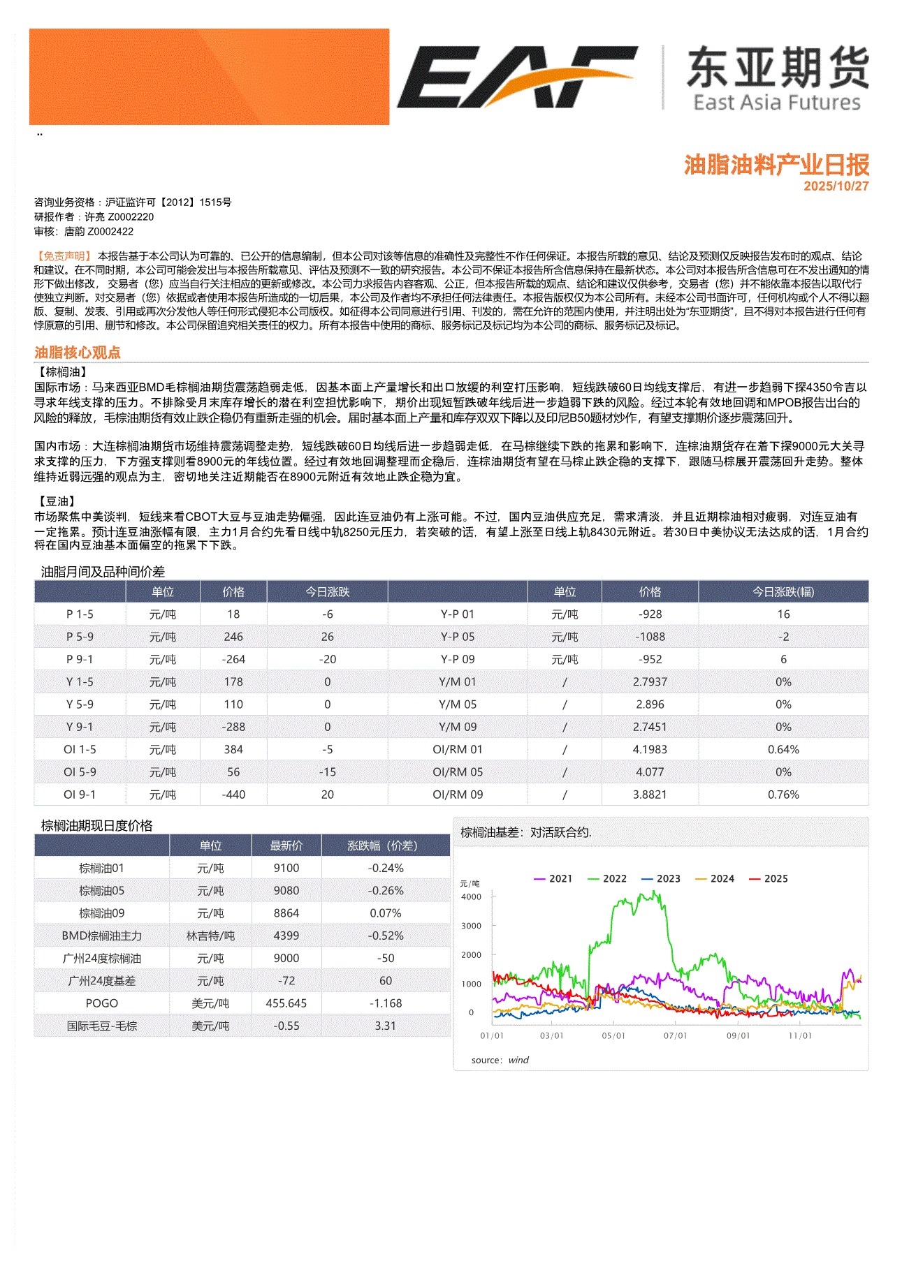 上海东亚期货-油脂油料产业日报-251027