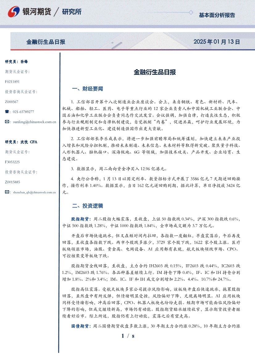银河期货-金融衍生品日报-260113
