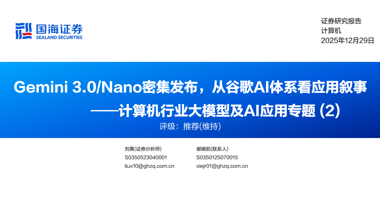计算机行业:国海证券-计算机行业大模型及AI应用专题 (2):Gemini 3.0/Nano密集发布,从谷歌AI体系看应用叙事-251229