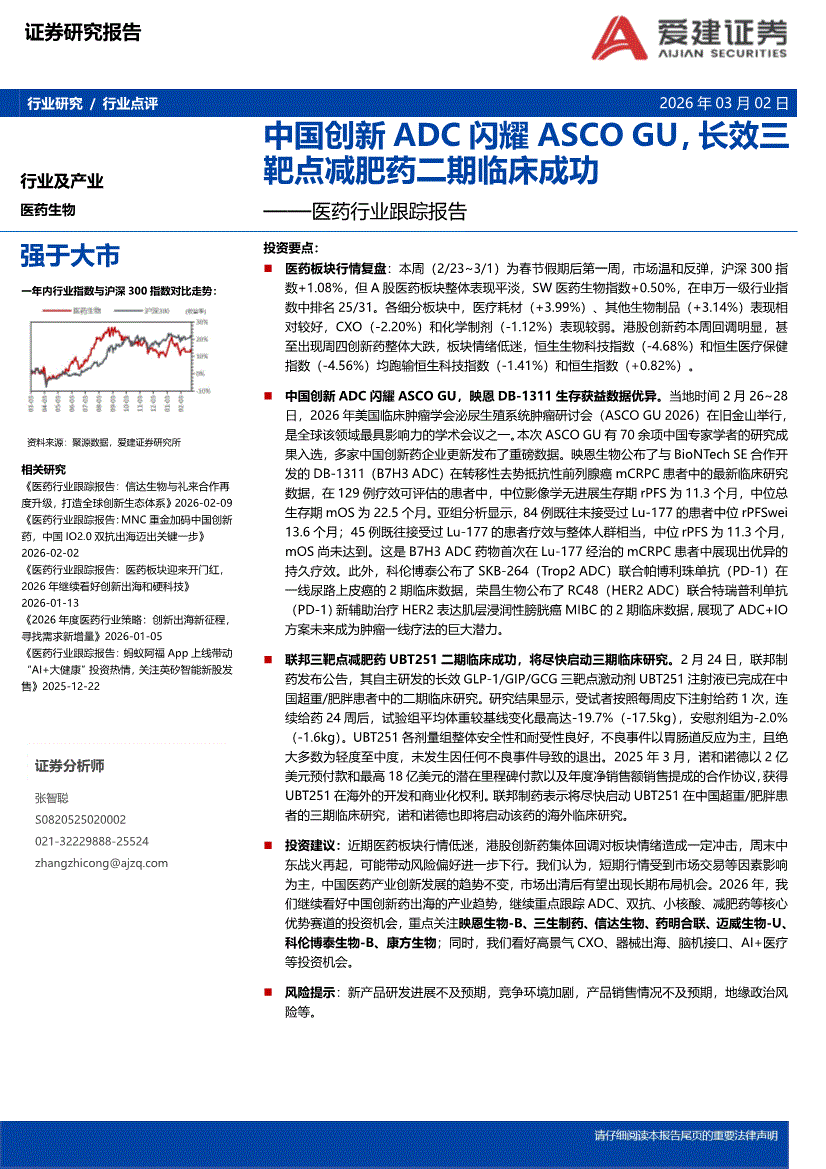 医药行业:爱建证券-医药行业跟踪报告:中国创新ADC闪耀ASCOGU,长效三靶点减肥药二期临床成功-260302
