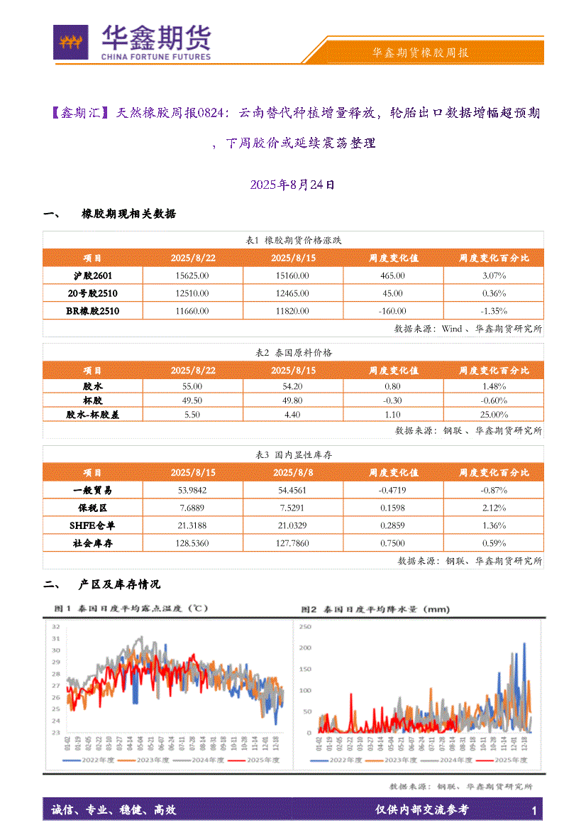 华鑫期货-【鑫期汇】天然橡胶周报:云南替代种植增量释放,轮胎出口数据增幅超预期,下周胶价或延续震荡整理-250824