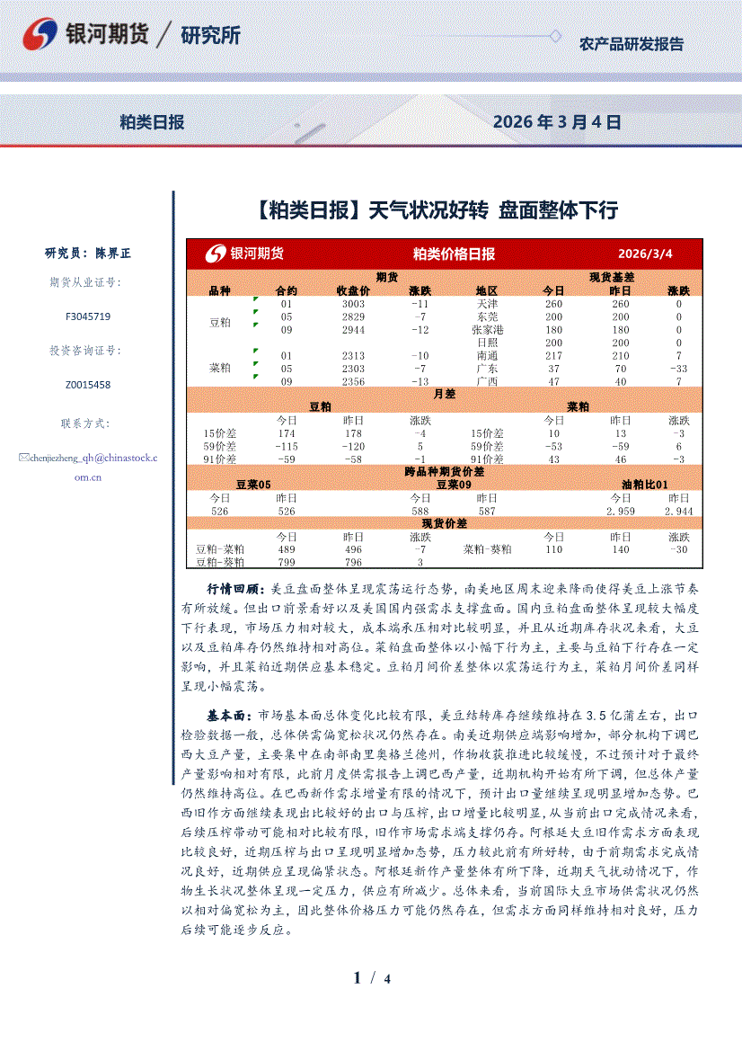 银河期货-【粕类日报】天气状况好转,盘面整体下行-260304
