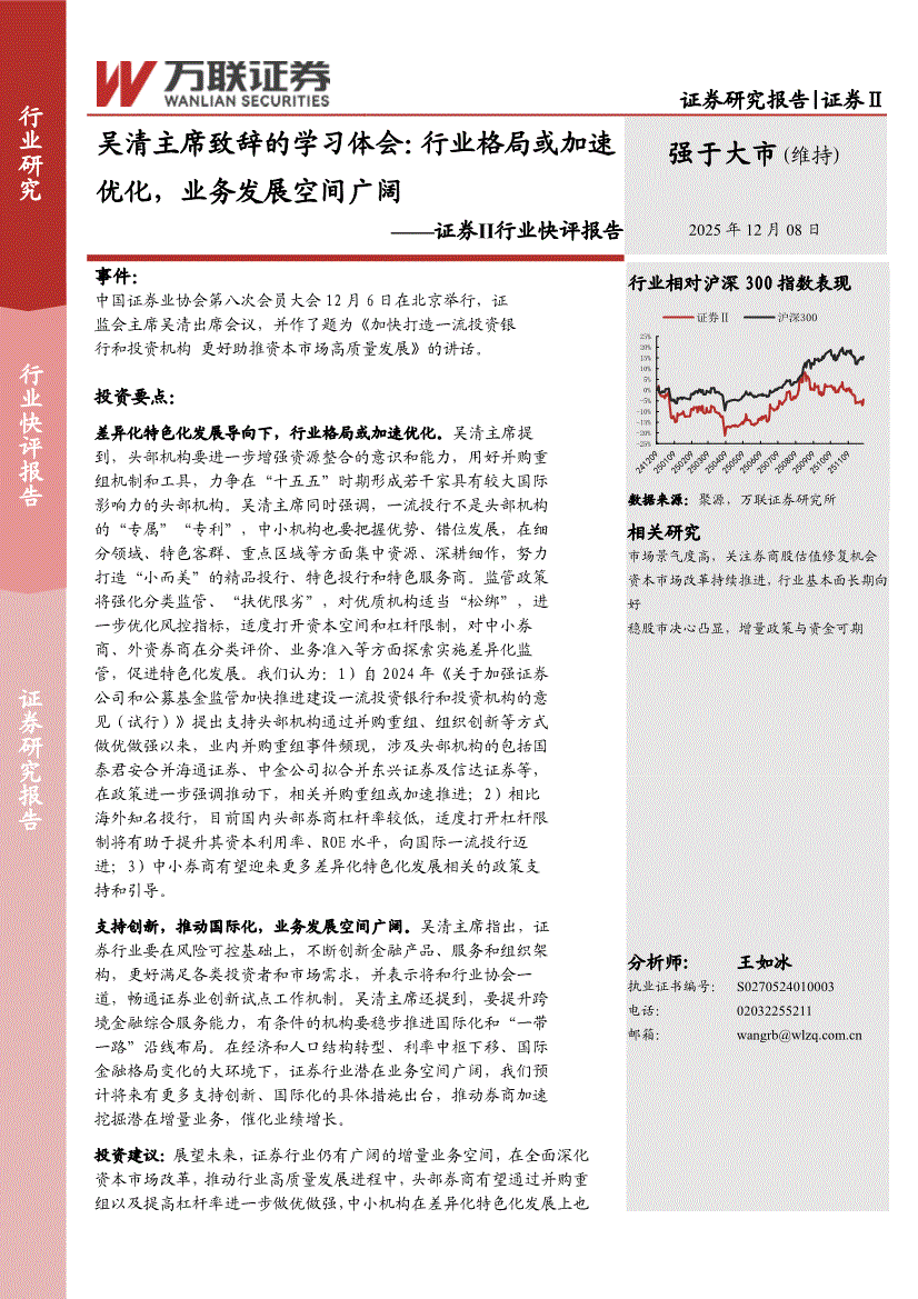 证券行业:万联证券-证券Ⅱ行业快评报告:吴清主席致辞的学习体会,行业格局或加速优化,业务发展空间广阔-251208