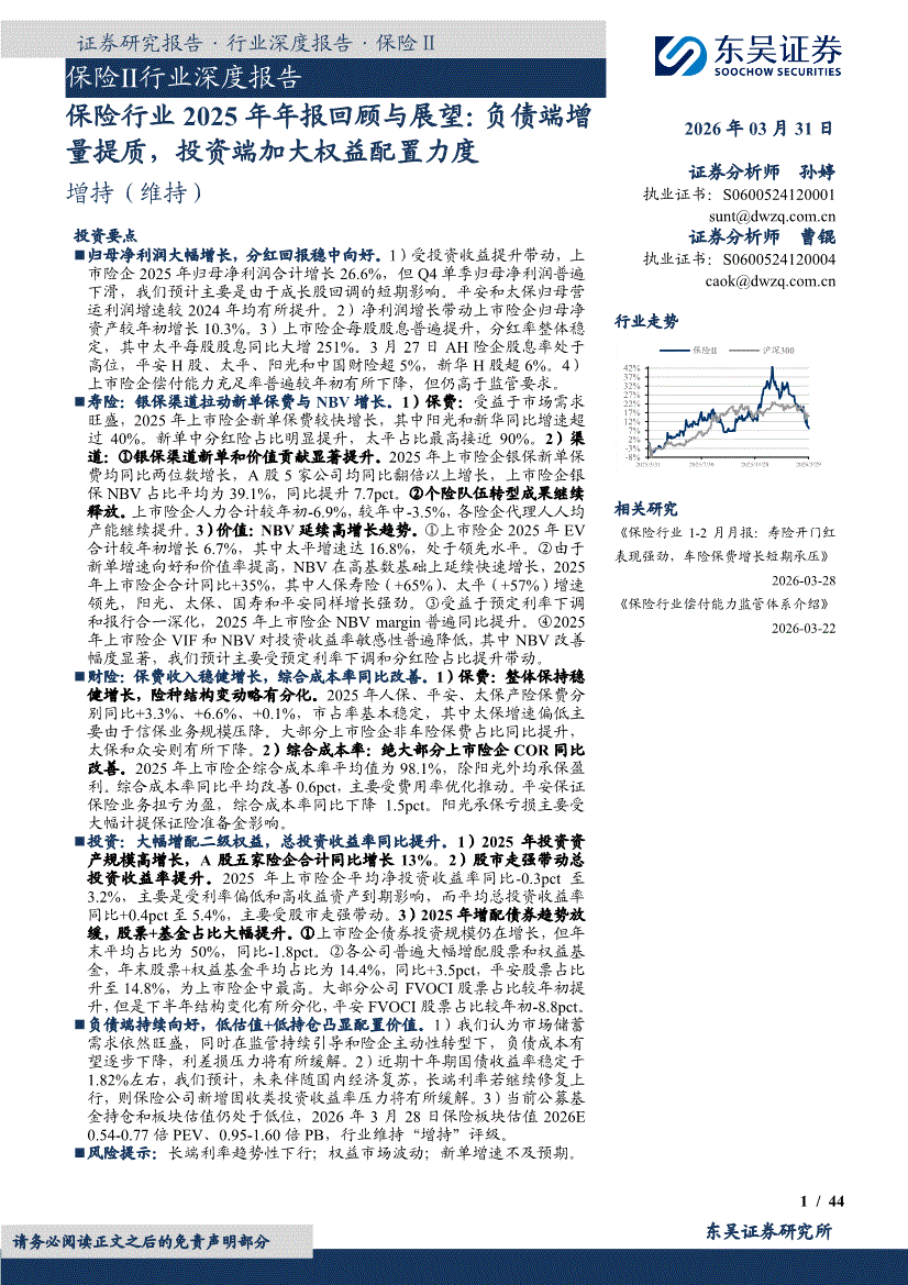 保险行业:东吴证券-保险行业2025年年报回顾与展望:负债端增量提质,投资端加大权益配置力度-260331