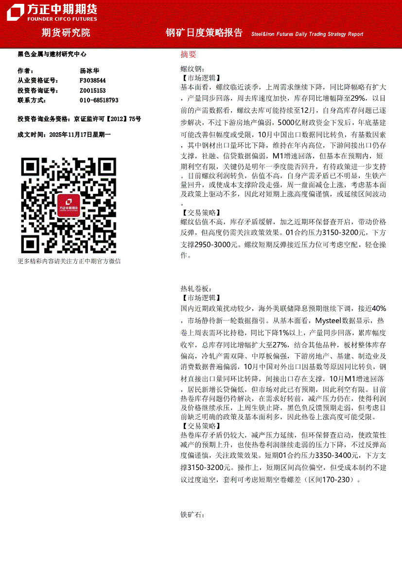 方正中期期货-钢矿日度策略报告-251117